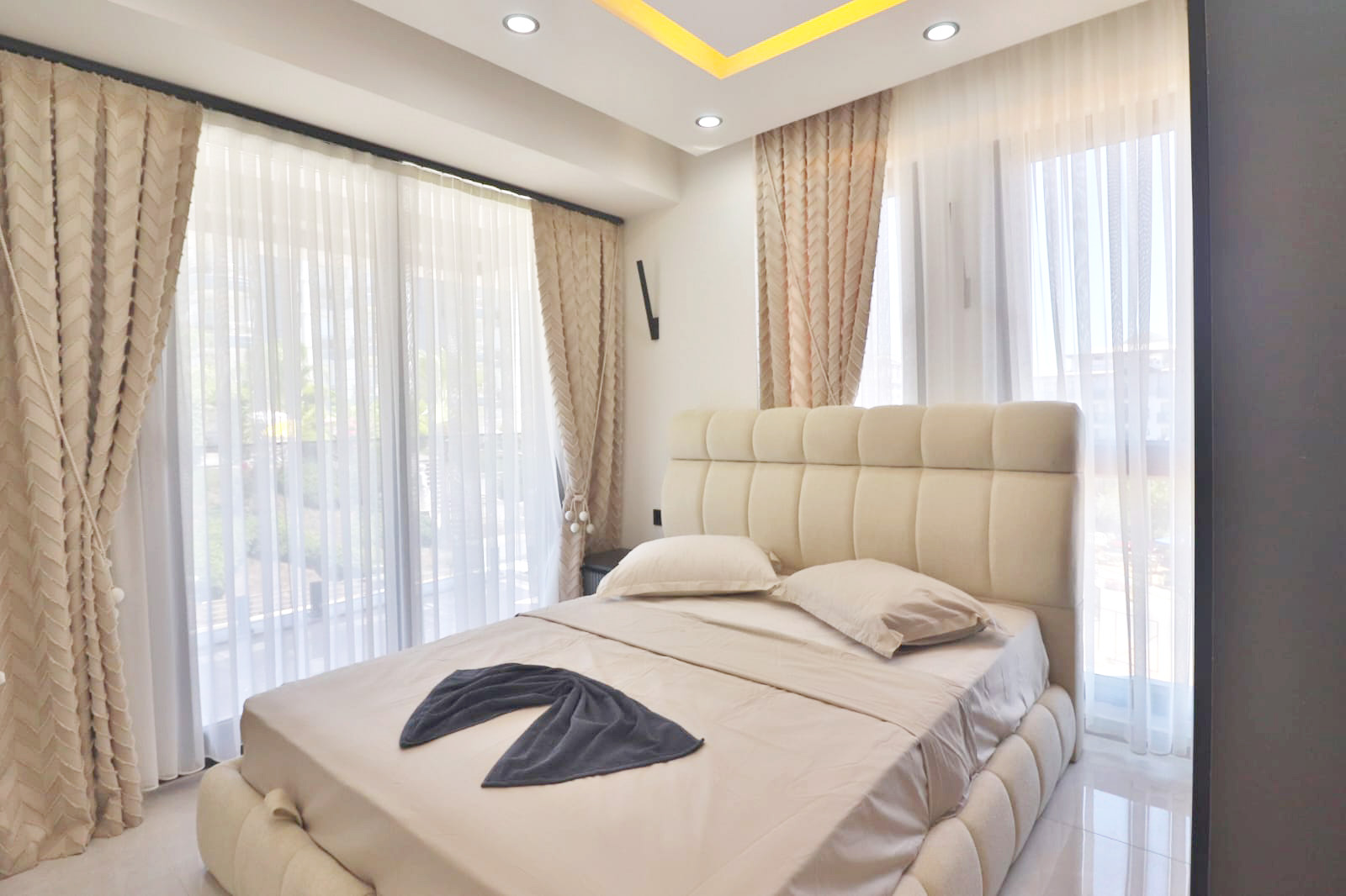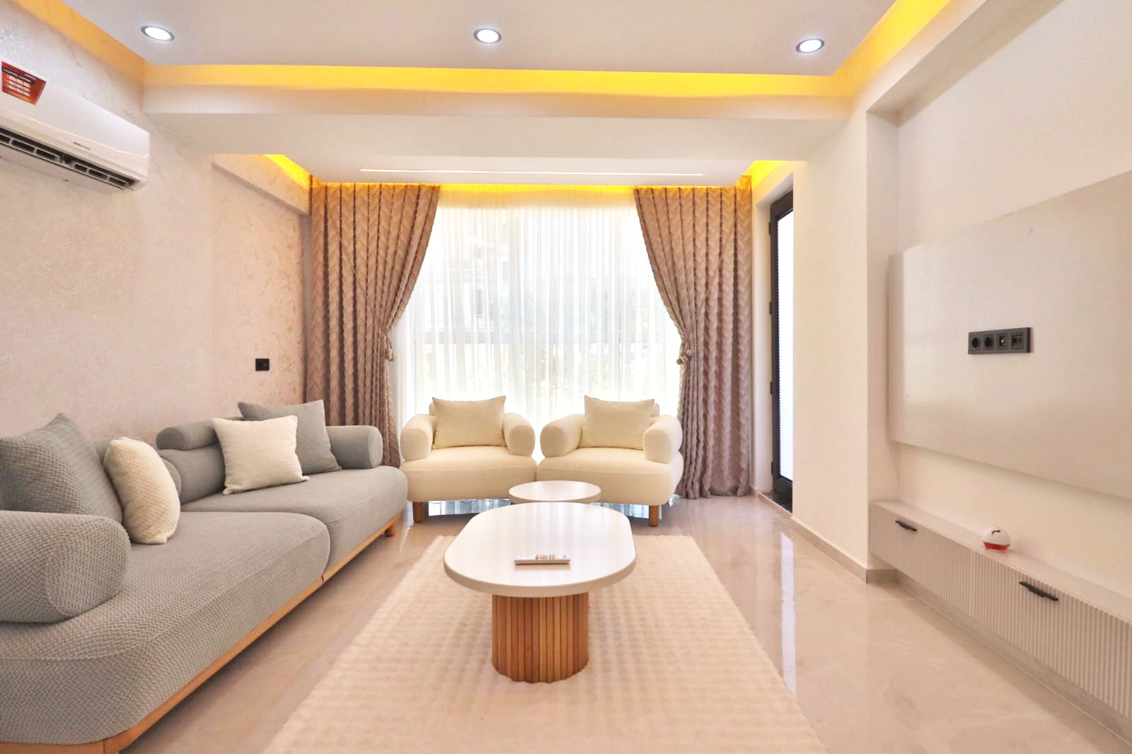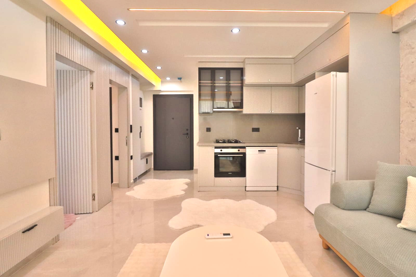 großes Grundstück 2+1 Zimmer-Wohnungen, 85 m² Smart-Home-Systeme Aufzug Offener Parkplatz Pool Wärme- Schall- und Wasserisolierung Stahlsafe in jeder Wohnung Rack-Sockel LED-Beleuchtung Klimaanlage Fußbodenheizung