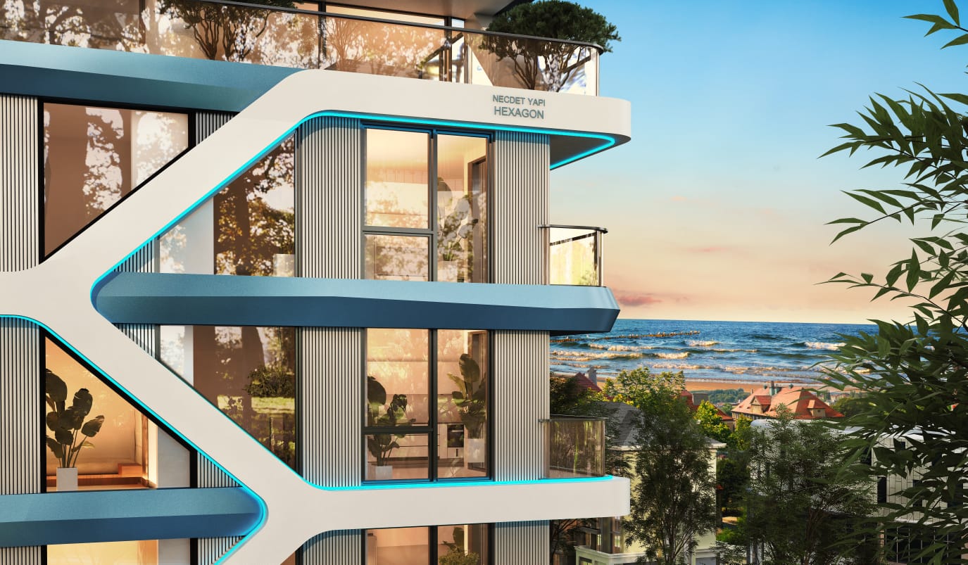 Meerblick, großes Grundstück 2+1-Zimmer-Wohnungen, 85 m² Smart-Home-Systeme Aufzug Offener Parkplatz Pool Wärme-Schall und Wasserisolierung Stahlsafe in jeder Wohnung Rack-Sockel LED-Beleuchtung Klimaanlage Fußbodenheizung