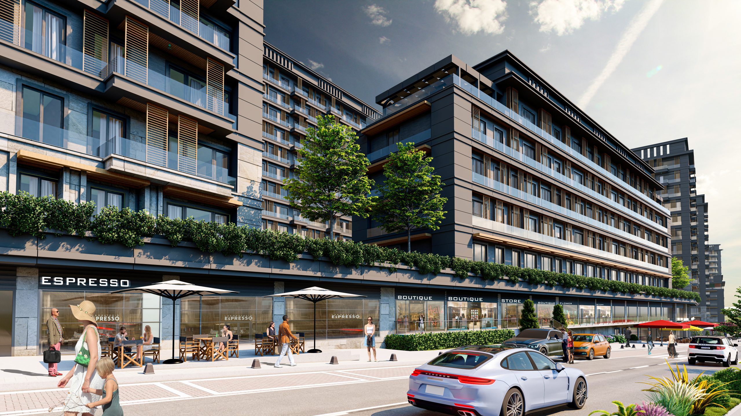 Unterhalb Wohnanlage 13000 Netto Quadratmeter Supermärkte Cafés Restaurants Boutiquen Apotheken medizinische Zentren Banken Dienstleister