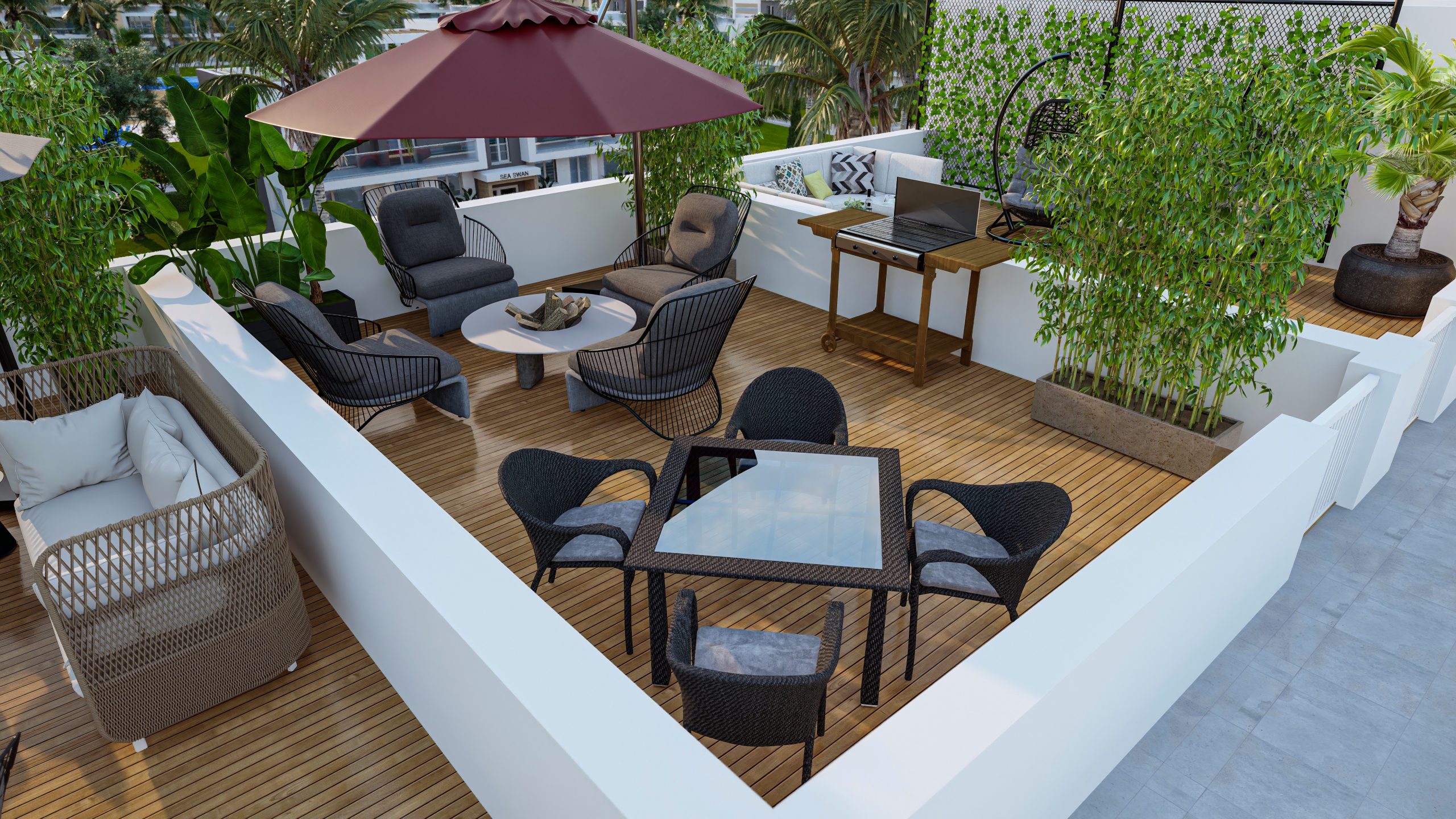 • Rooftop Lounge mit Meerblick