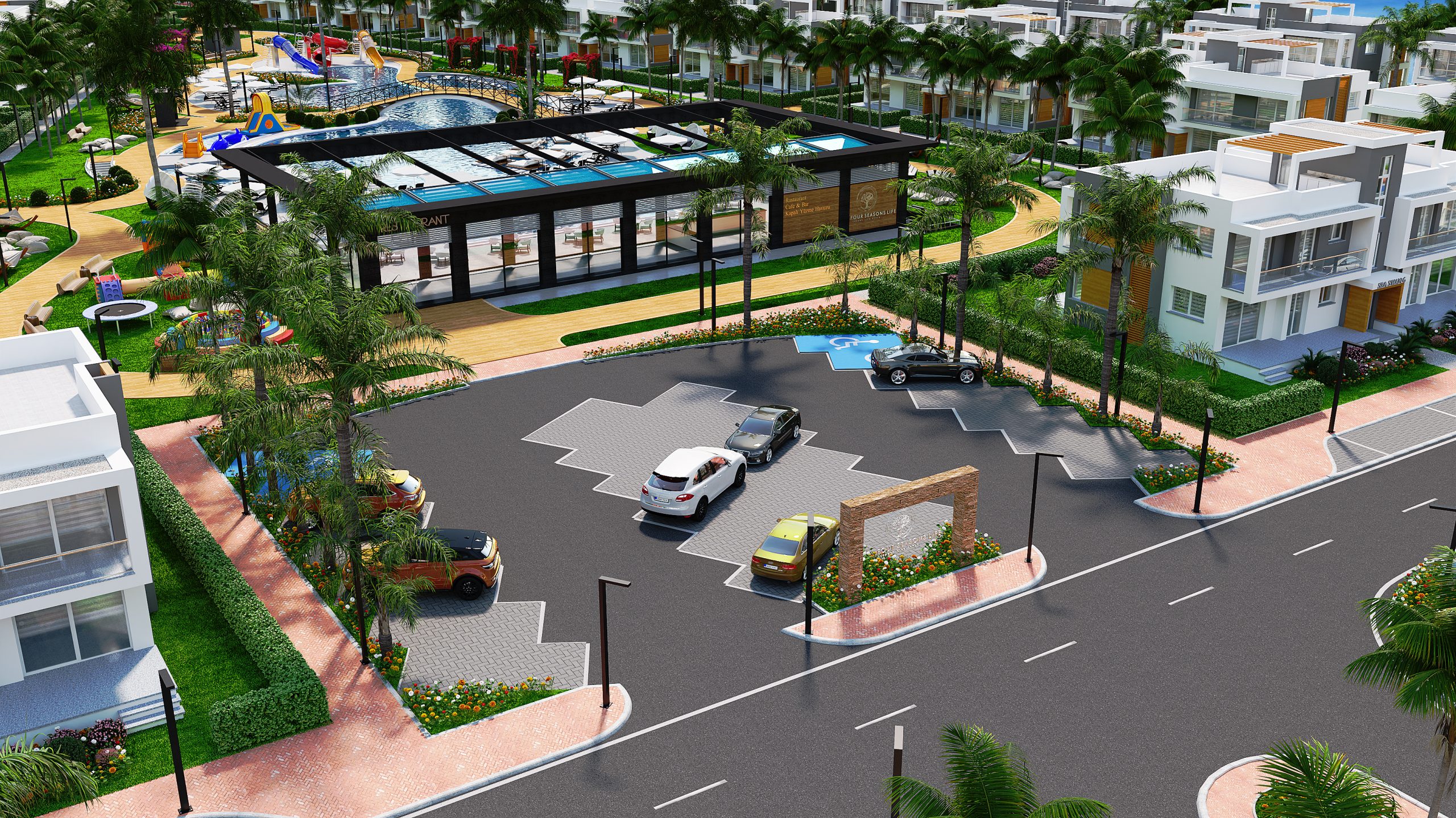 • Kinderclub, große Spielplätze, Pet Park für Hunde